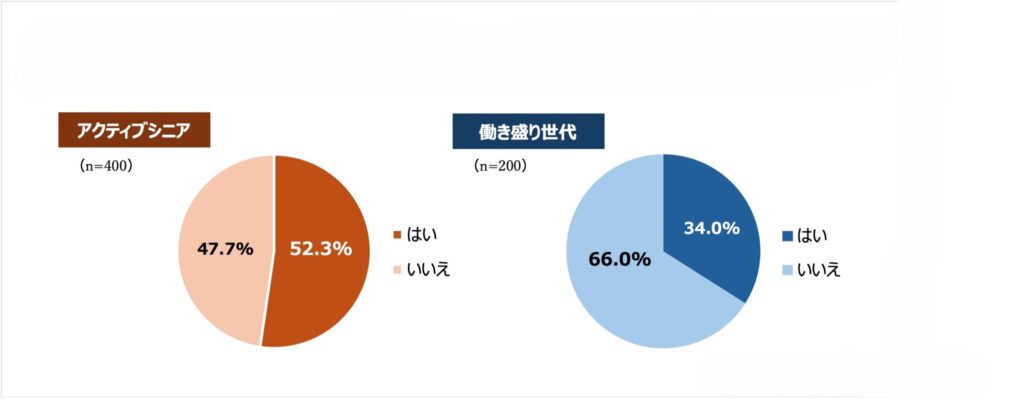 厚生労働省のガイドラインが推奨する身体活動量をクリアしていると回答した割合は、現役世代の34.0%に対し、アクティブな大人世代は52.3%。