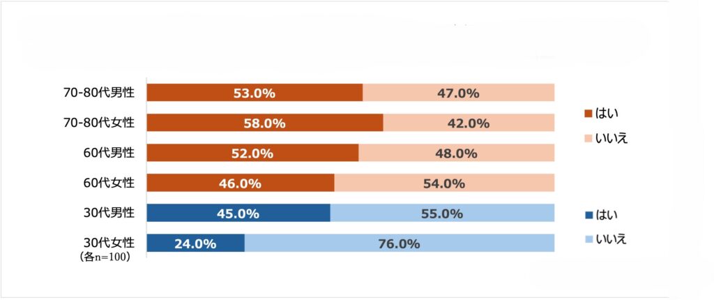 これは全世代の中で最も高い数値であり、日々の運動習慣を誰よりも主体的に、そして確実に実践しているという自意識の高さが浮き彫りになりました。