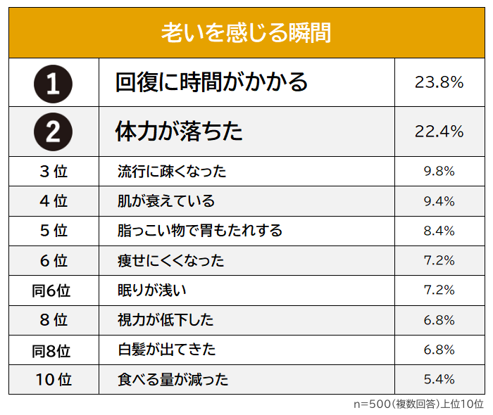 また、「老いを感じる瞬間」のトップ3は以下の通りです。