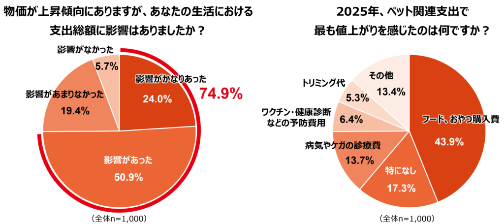 特に注目すべきは、「74.9%が物価高の影響を感じている」という点です。多くの飼い主が、「以前より負担が増えている」と実感している状況がうかがえます。